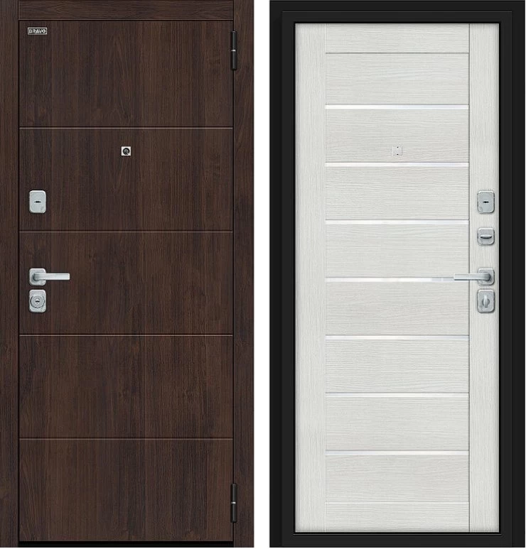 Надежная входная Дверь Браво Прайм/BChrome Almon/Bianco Melinga премиум класса по цене 35 350 руб. Большая толщина стали защитит от проникновения в ваш дом, квартиру или коттедж. Используется очень качественная фурнитура: замки, цилиндры, ручки, защелки. Покрытие и отделка двери изготовлено под внимательным контролем производителя. Дверь имеет долгий срок службы и гарантию.