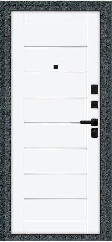 Надежная входная Дверь Браво Техно/SBlack Старк антрацит/White Silk премиум класса по цене 31 650 руб. Большая толщина стали защитит от проникновения в ваш дом, квартиру или коттедж. Используется очень качественная фурнитура: замки, цилиндры, ручки, защелки. Покрытие и отделка двери изготовлено под внимательным контролем производителя. Дверь имеет долгий срок службы и гарантию.