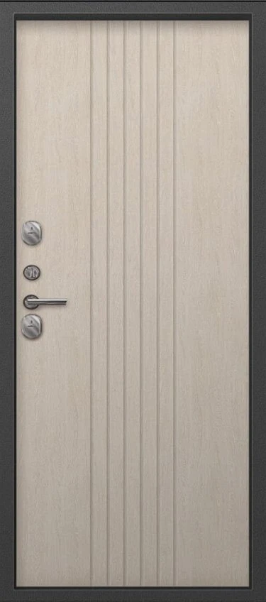 Надежная входная Дверь Термо-90 графит букле - седой дуб премиум класса по цене 34 000 руб. Большая толщина стали защитит от проникновения в ваш дом, квартиру или коттедж. Используется очень качественная фурнитура: замки, цилиндры, ручки, защелки. Покрытие и отделка двери изготовлено под внимательным контролем производителя. Дверь имеет долгий срок службы и гарантию.